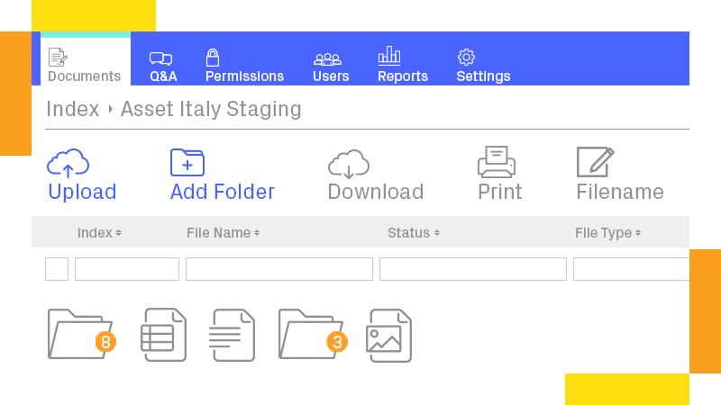 Datasite 데이터 룸은 추가 자금을 찾고 있는 회사에 탁월한 옵션입니다. 이 플랫폼은 기업 개발, 투자 은행, IPO, 벤처 캐피탈, 사모 펀드 및 관련 거래에 서비스를 제공합니다. 이 VDR 플랫폼은 사용자가 파산 처리, 실사 수행, 지적 재산 관리, 인수합병 가속화, 중요한 문서 작성을 확신을 갖고 100% 정확하게 수행할 수 있도록 하는 혁신적인 기능을 갖추고 있습니다.