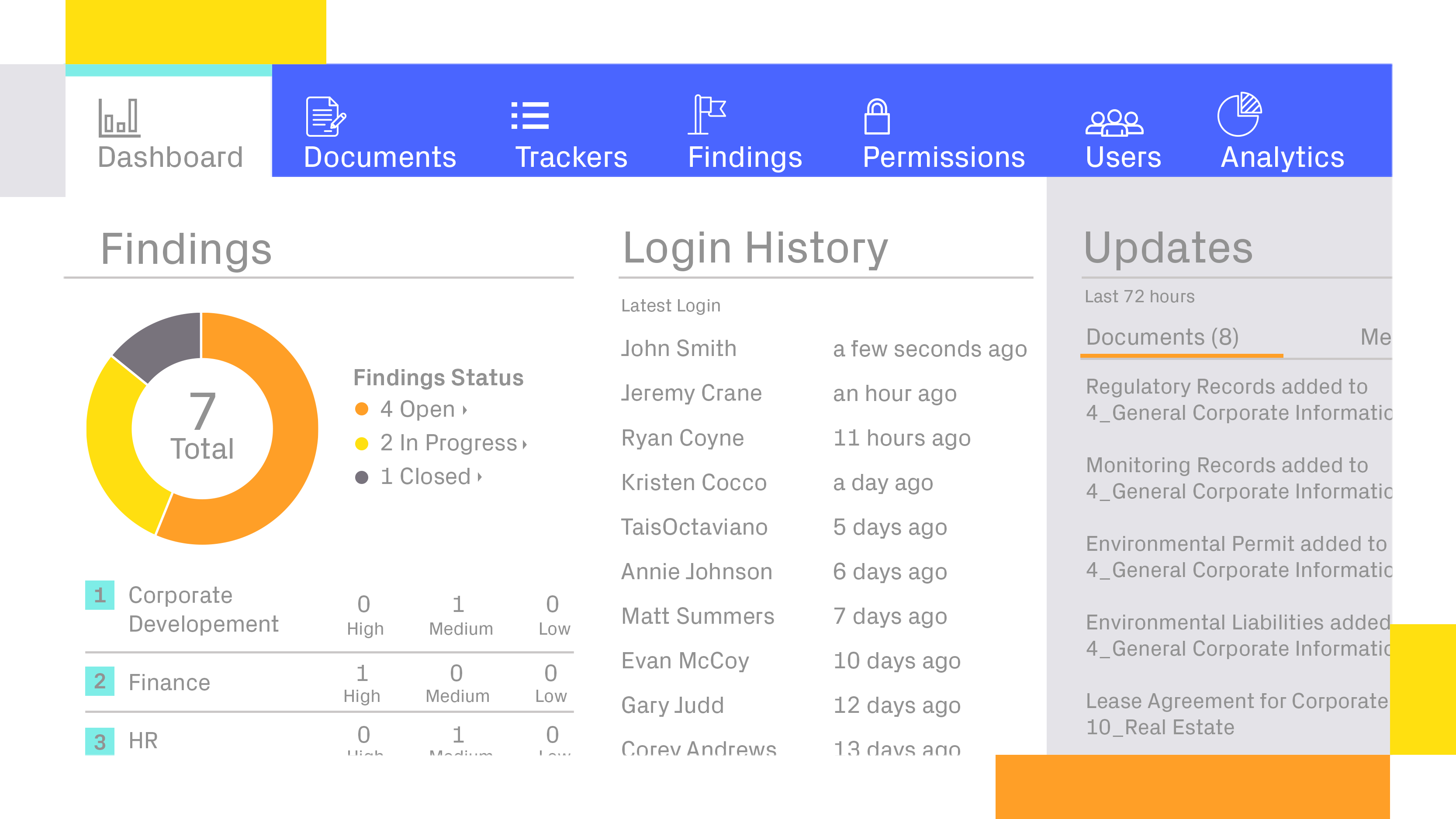 Datasite Merrill 데이터 룸은 ISO 27001 인증 및 SSAE 16 SOC 2 준수에 명시된 대로 엄격한 보안 기준을 따릅니다. 본보기가 될 만한 안전 프로토콜은 세분화된 사용자 권한 설정 및 세부 분석을 통해 완성됩니다.